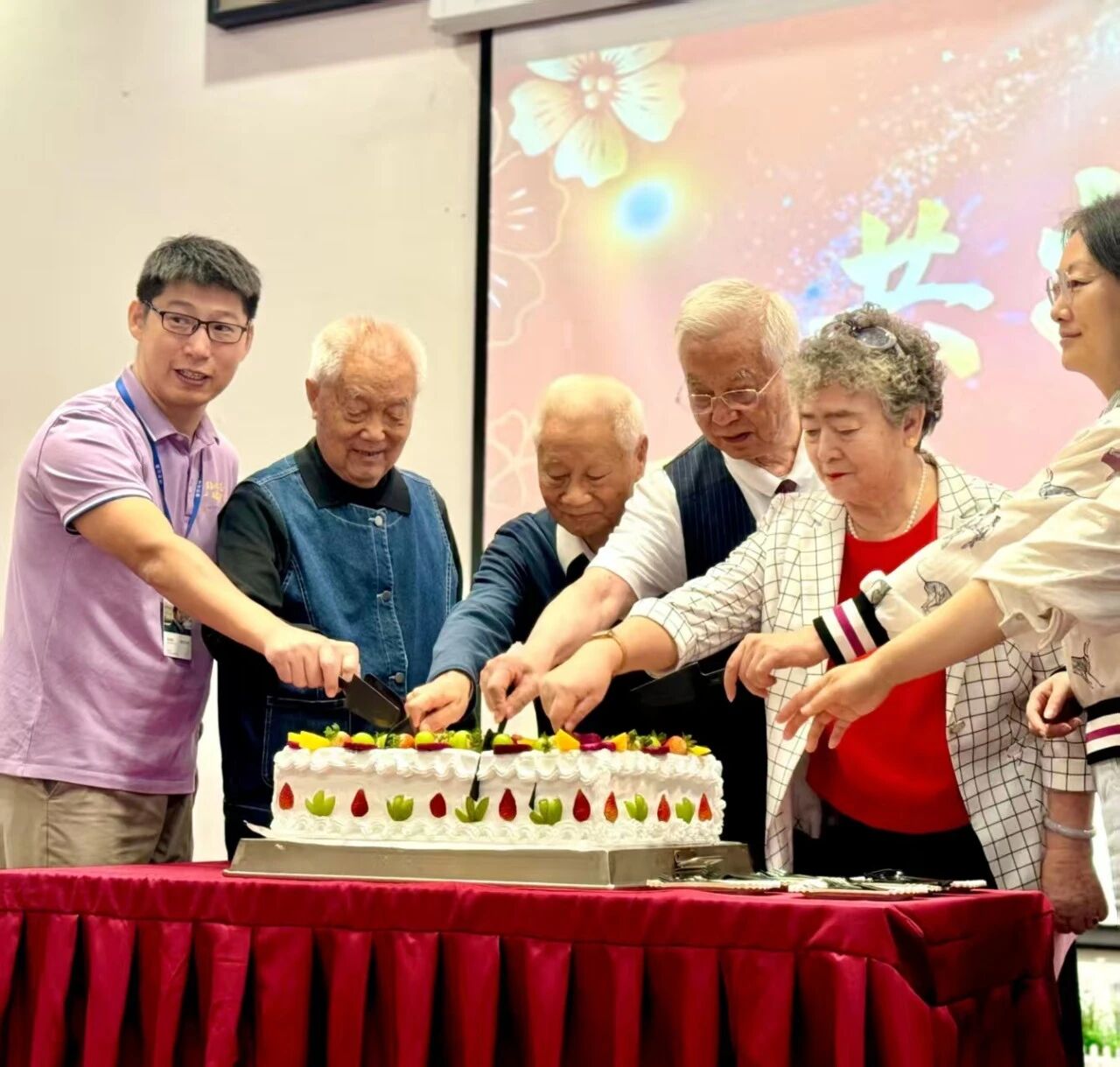 嘉宾与长者代表共同切下充满祝福的蛋糕