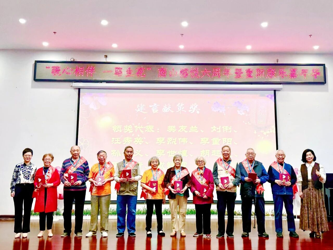 庆典特设颁奖环节,向那些默默耕耘、温暖他人的身影致以崇高敬意:“建言献策奖”与“舌尖守护奖”表彰长者智慧与后勤匠心;“乐学传薪奖”与“终身学习奖”致敬终身成长的生命姿态;“热心助人奖”与“最佳室友奖”则礼赞邻里守望、温情共居的社区精神。每一次掌声,都是对平凡善举的回响;每一份荣誉,都是对“贴心服务,暖心守护”服务理念的最好诠释。