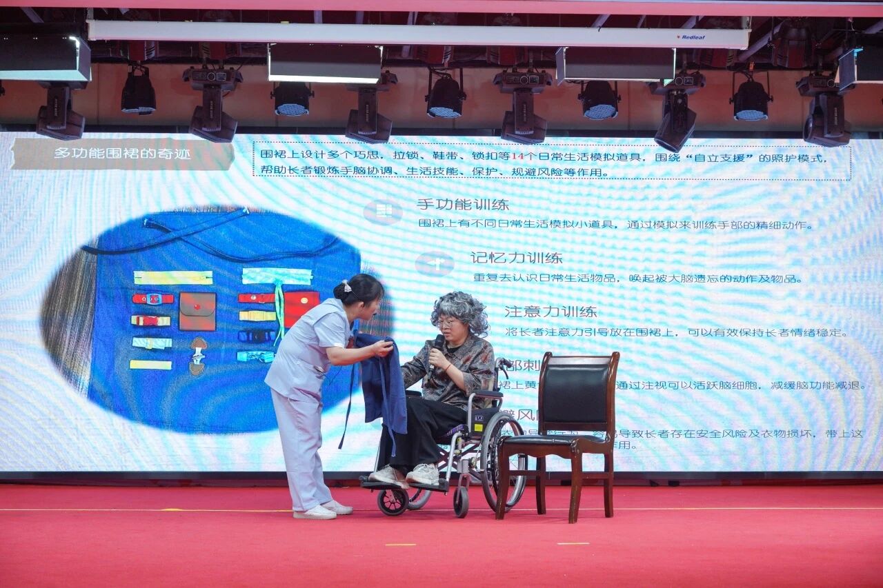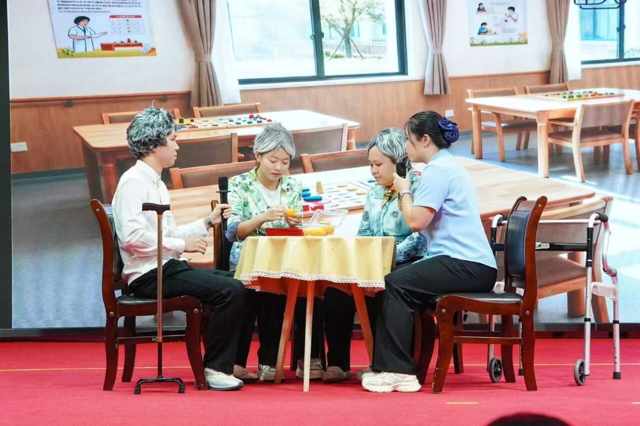 其中,海珠滨江路分公司的《韩姨案例》凭借情景演绎脱颖而出,拿下“最佳创意奖”。现场通过还原社工与护理员为韩姨进行穿衣辅助、情绪疏导的真实场景,将“非药物干预”具象化——面对韩姨因认知衰退产生的抗拒情绪,照护团队用耐心沟通代替强硬协助,用熟悉的老物件唤醒记忆,成功破解“家属想照护却无方法”的普遍痛点,让专业照护看得见、学得会。