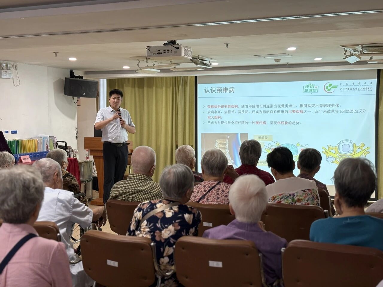 广州榕悦?越秀公园联合流花街社区医院,邀请孙逸仙纪念医院、广东省中医院的三位专家,围绕“饮食调理、颈椎病防治、膝关节养护”开讲,互动环节精准解决长者困惑,让健康知识听得懂、用得上。