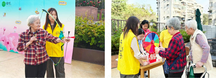 福田区榕悦城市长者照料中心的“默契闯关”中,轮椅操唤醒活力,合唱歌声里满是温情。
