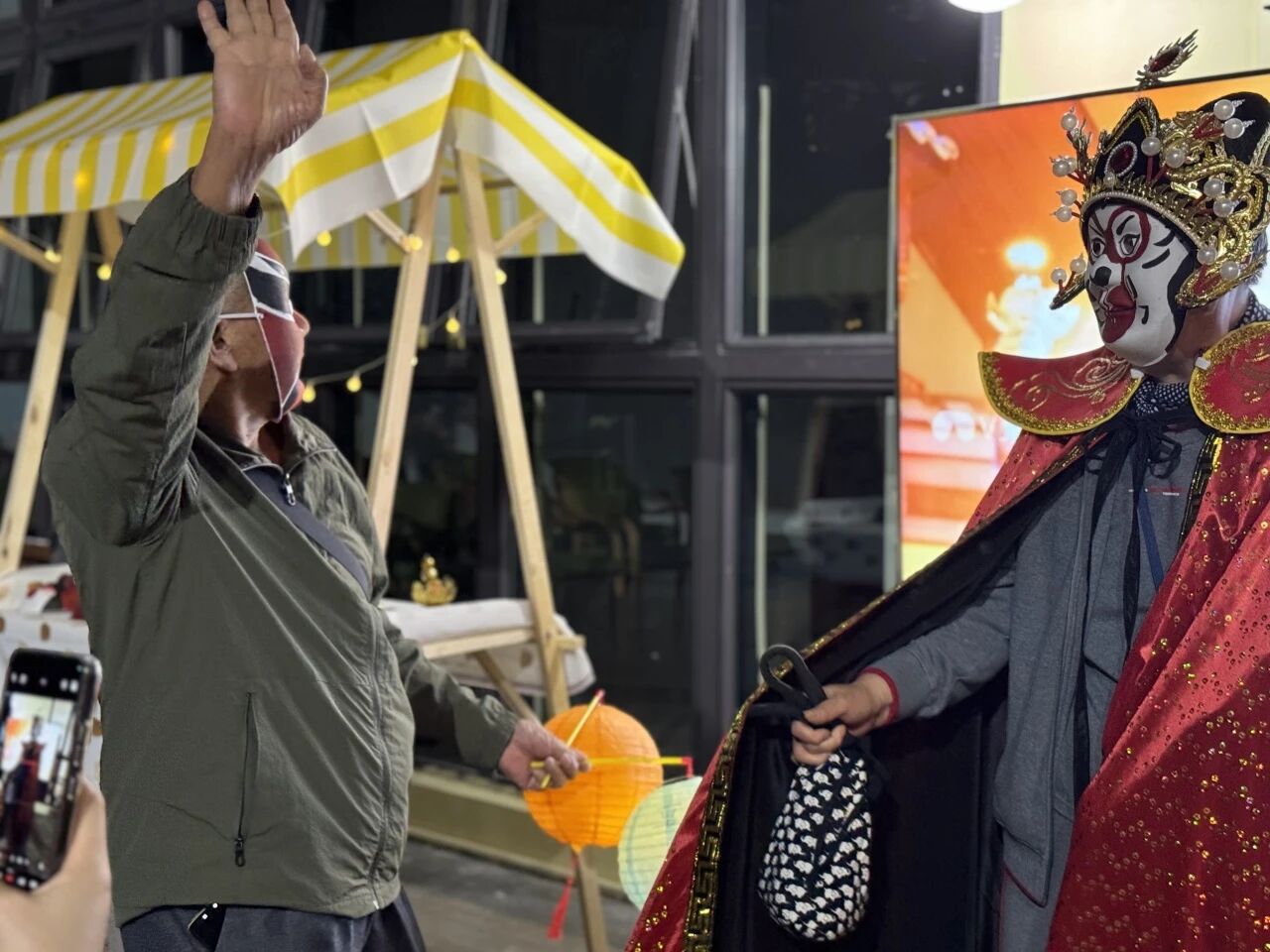 川剧变脸体验区人气高涨,长者们换上戏服尝试变脸,亲身感受了传统艺术的魅力。花灯共愿区里,长者们写下祝福挂于花灯之上,点亮了夜空也点亮了心愿。