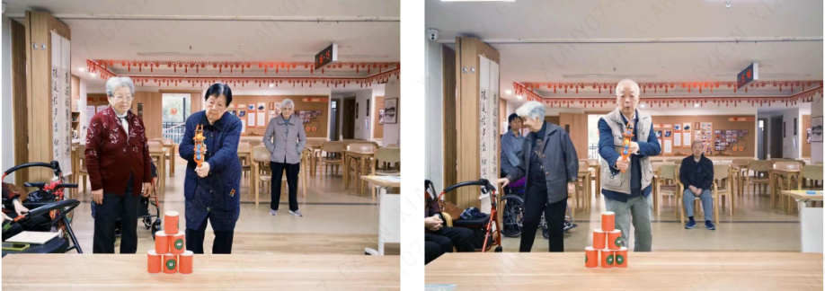 护理型赛区内,“精准全运”套圈圈、“同心同技”桌上保龄球等项目,让长者们在轻松比拼中收获幸福感。自理型赛区的“协作全运”传球接力、“毅力全运”桌上冰壶等项目,融合竞技性与趣味性,让大家动手动脑两不误。