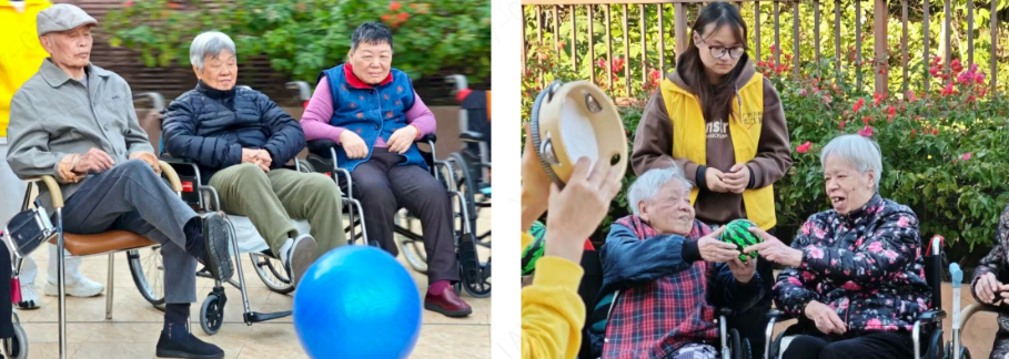 “欢乐瑜伽球”率先开场,大家双手扶椅、双脚轻踢,目光紧追滚动的彩球。“小心接住!”“踢得真准!”轻声提醒与喝彩此起彼伏,长者们迅速融入氛围。龙姨与萧姨相视一笑:“这项目就得眼明脚快!”