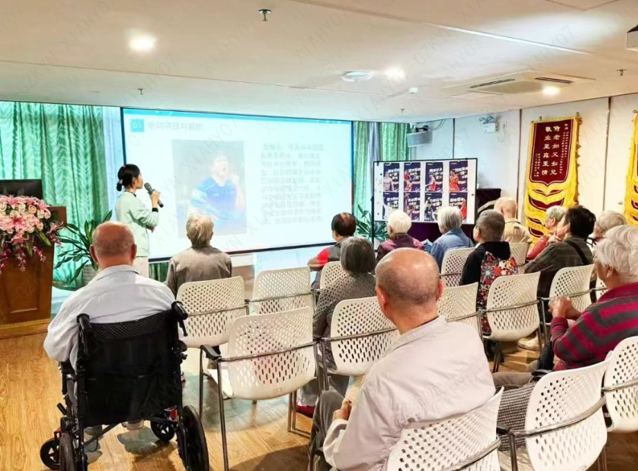 在深圳市福田区榕悦城市长者照料中心,大屏幕上,全运会历史、举办信息及“激情全运会,活力大湾区”主题口号、中华白海豚原型吉祥物等元素逐一呈现,长者们认真聆听,不时点头称赞。