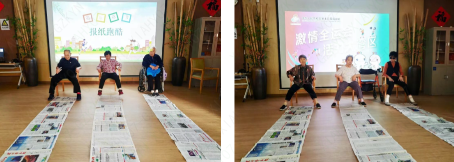 报纸跑酷环节,长者们用脚卷动报纸前行,乐趣满满。整场活动,长者们热情高涨,既收获了知识,也感受到了纯粹的快乐,满心期待后续趣运会的更多精彩。