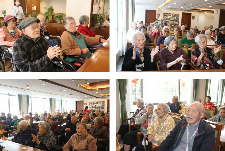汇演落幕时,全体演员登台谢幕,长者们纷纷起身鼓掌,掌声经久不息。工作人员用镜头定格下一张张笑脸合照,将这份欢乐与陪伴永久留存。