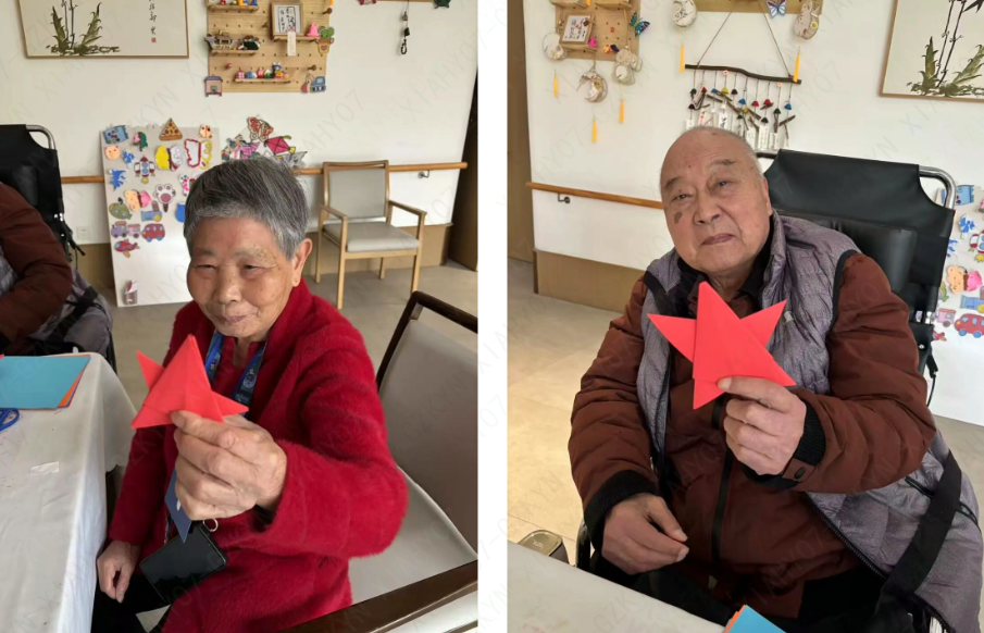活动室里没有喧哗,只有纸页翻折的窸窣声与轻轻的笑语。每一次折叠、每一道压痕,都是耐心与巧思的沉淀。这些亲手制成的红星,不仅是一件手工作品,更似一扇窗,推开回忆的帷幕——有人想起年轻时佩戴的徽章,有人忆起与家人共做手工的往日时光。