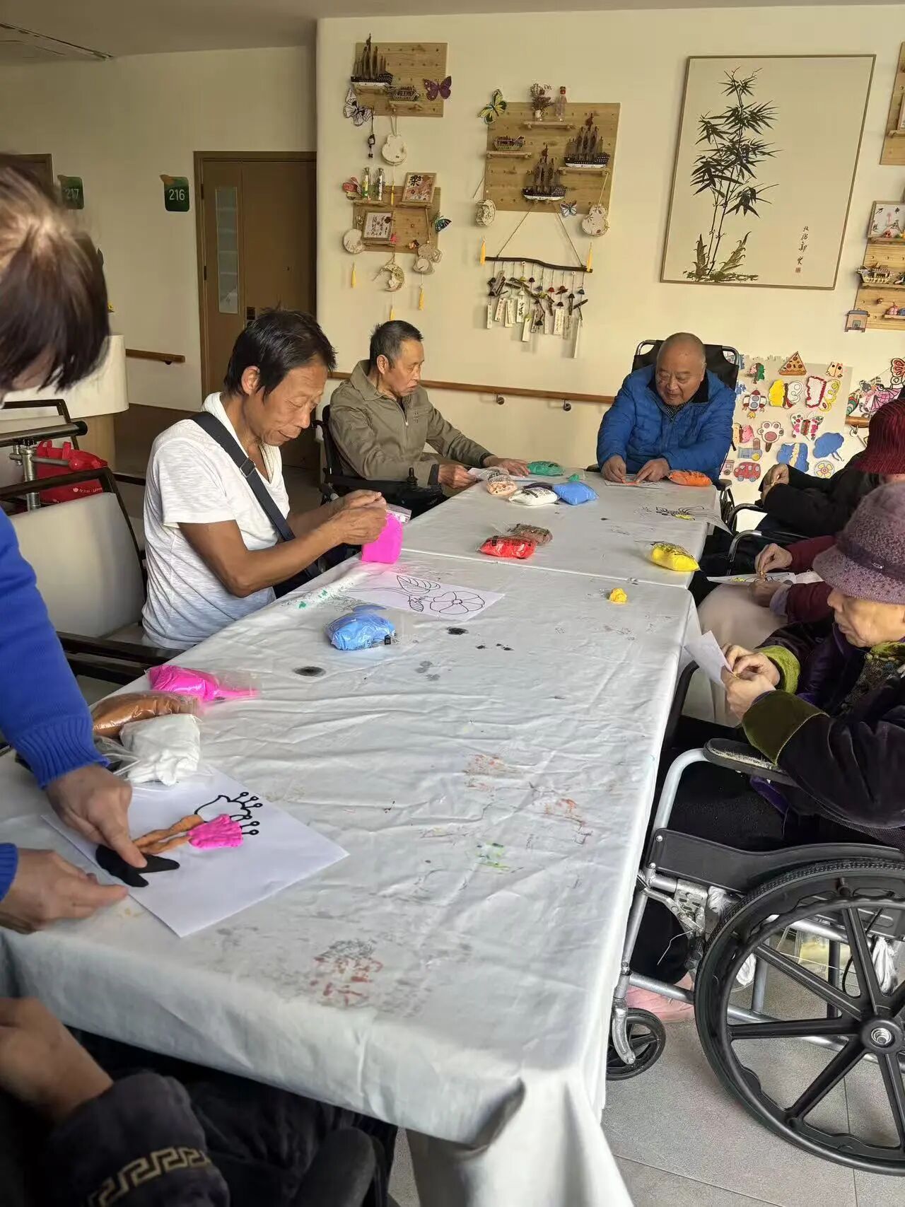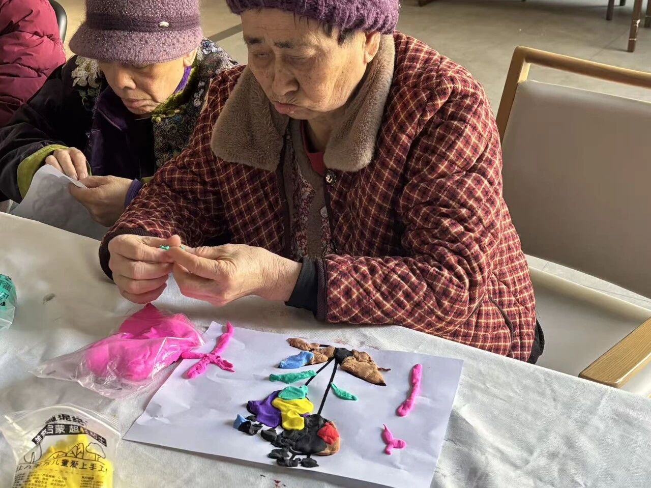 午后阳光温柔地铺满活动室的长桌,彩色粘土在长者们指间流转,欢声笑语萦绕一室。大家围坐在一起,揉、压、捏、贴,让一个个生动的形象在纸上渐渐苏醒。
